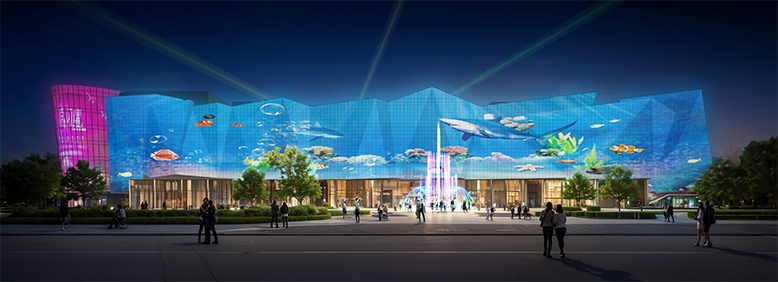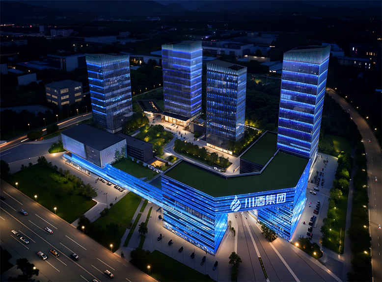 瀘州自貿(mào)區(qū)位于四川省瀘州市。燈光設(shè)計采用樓宇數(shù)字媒體秀的方式